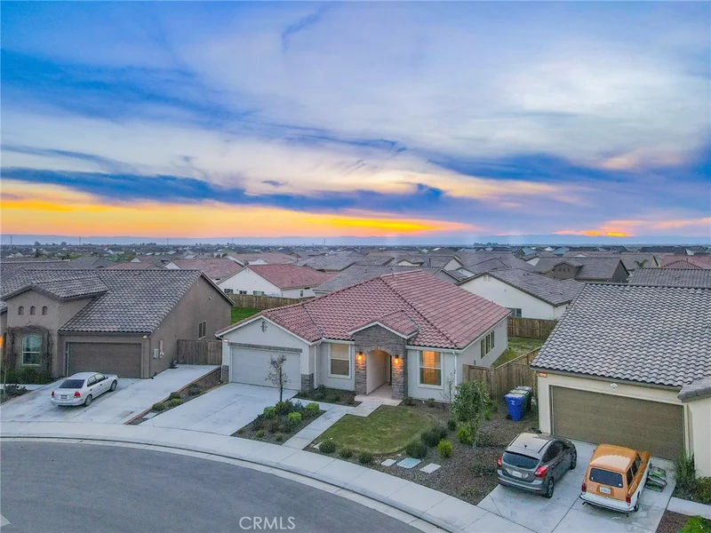 SINGLE-STORY STUNNER ALERT! No stairs. No compromises. Just over 2,000+ sq ft of turnkey perfection. Built in 2023, this beautifully designed single-story home delivers the modern layout buyers are searching for. Offering 4 spacious bedrooms--3 with oversized closets--this home blends comfort, function, and style effortlessly. From the moment you arrive, you'll notice the impressive oversized front door that creates a grand first impression. Step inside to soaring high ceilings, elegant plantation shutters, luxury wood-look tile flooring, and brand-new carpet in the bedrooms. Recessed lighting throughout keeps the home bright and inviting. The open-concept kitchen is the heart of the home, featuring quartz countertops, a spacious center island with sink, window views, and seamless flow into the living and dining areas--perfect for entertaining. Both bathrooms offer dual sinks for added convenience, and you'll appreciate the dedicated indoor laundry room. The paid-off solar system adds energy efficiency and long-term savings. Out back, you'll find a spacious backyard ready for your imagination--design the outdoor retreat you've always wanted. Located in a newer community with a large park just a short walk away, this home truly checks every box. Move-in ready. Modern. Single-story living at its finest.