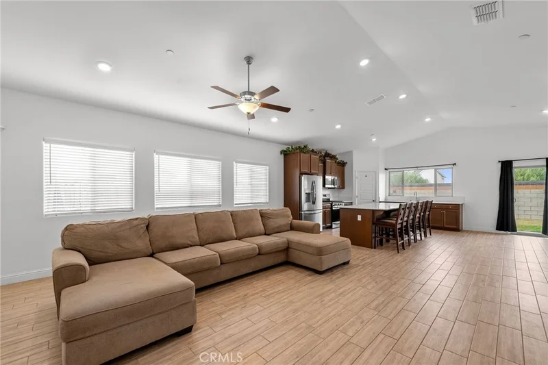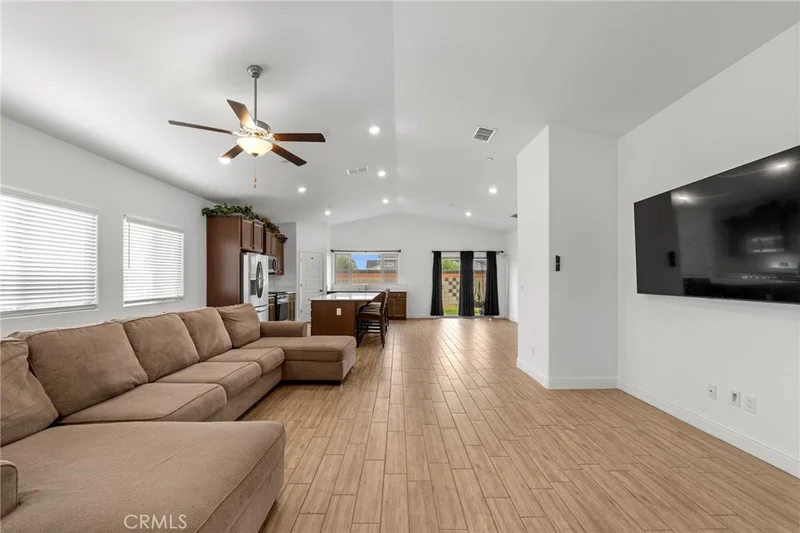 Beautiful smart home in Gossamer Grove featuring 4 bedrooms, 2 bathrooms, and soaring ceilings throughout. The heart of the home is the stylish kitchen, complete with a large island, sleek countertops, and stainless steel appliances perfect for everyday living and entertaining. The open-concept floor plan offers tile flooring in the main living areas and flows seamlessly to a spacious backyard with a brick wall and concrete paver walkways. The desirable tile roof provides longevity, energy efficiency and curb appeal. Smart-home upgrades include a smart thermostat, automatic front and back sprinklers, Ring doorbell, app-controlled two car garage, whole-house ventilation system for fresh air circulation, integrated modem box with WI-FI extenders, EV-ready garage, and perimeter water drainage. Conveniently located just a short walk from neighborhood parks and community amenities such as pickleball courts, playgrounds, dog parks, walking trails, and a nearby police substation.