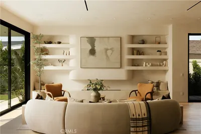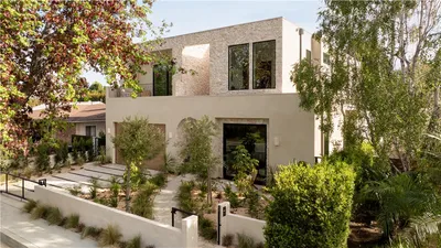 Tucked behind a clean, modern façade, this newly constructed residence unfolds as a warm, organic retreat where natural textures, soft tones, and effortless indoor-outdoor living take center stage. Spanning approximately 4,000 square feet on a 7,000 square foot lot, this 4-bedroom, 5.5-bathroom home blends thoughtful design with everyday functionality. Built and designed by Thynk Development, the home showcases a refined approach to modern organic living. Inside, soaring ceilings and lime-wash walls create a calm, elevated atmosphere, complemented by natural wood finishes and curated materials throughout. The open-concept living space flows seamlessly into a chef’s kitchen featuring natural stone countertops, custom cabinetry, premium Thermador appliances, and a separate butler’s kitchen—designed for both intimate living and elevated entertaining. The layout offers one en-suite bedroom on the main level, ideal for guests or a private office, while upstairs features three en-suite bedrooms including a stunning primary suite with a private balcony and spa-inspired bath, delivering a true resort-like experience. Large sliding glass doors open to a lush backyard oasis complete with a pool, expansive lawn, and detached cabana—perfect for dining, lounging, and hosting in a serene, private setting. Modern convenience meets luxury with a fully integrated Control4 smart home system, alarm and security system, built-in sound system, and a massive solar panel system for enhanced efficiency and sustainability. A rare offering that blends modern organic design, refined finishes, advanced technology, and resort-style living in one of Sherman Oaks’ most sought-after neighborhoods.