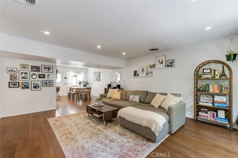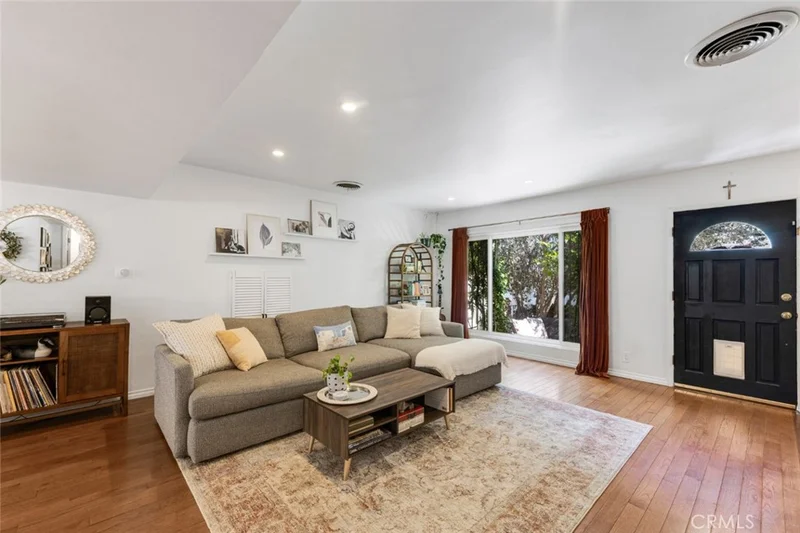 Beautifully maintained and thoughtfully updated 2 bed, 2 bath, 2-story townhome in a small, well-kept Sherman Oaks community, offers the ease of move-in ready condition and the everyday convenience of one of LA’s most loved neighborhoods. Gated entry opens to a private front courtyard with budding bougainvillea tree, perfect for morning coffee or evening entertaining. Enter into a bright, spacious, open floor plan living space with hardwood floors, recessed lighting, and abundant natural light throughout. The living room offers a view of the front courtyard through the large picture window; a generous storage space tucked away; and a unique alcove for display, kids play, pet area, or other creative use. Move seamlessly into the dining area and adjacent kitchen, fully equipped with granite counters, ample white cabinets, breakfast bar seating, and a convenient, in-unit laundry area. A remodeled downstairs ¾ bath features stylish hex-tile flooring, a pedestal sink, and a contemporary updated shower ideal for guests. Upstairs, two spacious bedrooms offer hardwood floors, recessed lighting, and contemporary ceiling fans. The bright primary bedroom boasts a dressing area and extra-large picture window while the second bedroom offers a closet with custom built-ins for effortless storage efficiency. They share a completely remodeled full bath with hex-tile floors, dual-sink vanity, and an oversized spa-style shower with multiple shower heads. The HVAC unit was recently replaced, and the property has one assigned parking space in a community carport with additional storage above. HOA dues also include water, trash, and sewer, plus a recently renovated community pool and appealing, drought-conscious landscaping in a communal front area. Situated moments from Ventura Blvd’s dining and shopping, neighborhood parks, and easy access for commuting throughout LA, this is a property not to be missed!