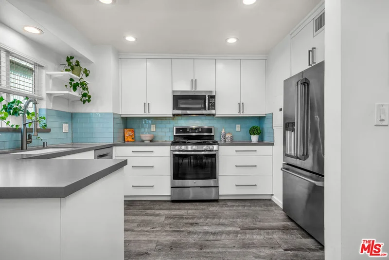 Welcome to this beautifully updated 2-bed, 2-bath Town home in the heart of Sherman Oaks! This propety has been pre-inspected, is move in ready & perfect for relocation with designer furniture included. A great S. of the Blvd location. Private entrance & patio tucked behind gated & lush landscaping. This bright two-story home offers a spacious outdoor patio, perfect for entertaining. Inside, you'll find wood plank porcelain tile flooring & plantation shutters throughout the open-concept first floor. The living room features a wall of windows with views of your private outdoor space, while a cozy nook under the stairs can be customized for storage, a pet area, or a mini play space. Recessed lighting & a stylish modern updated bathroom downstairs with custom storage cabinets. The formal dining area flows seamlessly into a fully remodeled kitchen with quartz countertops, custom cabinetry, a glass tile backsplash & top-of-the-line appliances including a GE stove, microwave/convection oven & Bosch dishwasher. A built-in laundry closet, great storage & character complete the first floor. Upstairs, the spacious primary bedroom hosts large picture windows with generous custom & cedar lined closets with shelving to add more space. Both 2nd floor bedrooms have ample closet space with custom-mirror sliding doors. The updated bathroom features a stunning deep slipper tub & a separate shower perfect for unwinding. New water heater & HVAC recently installed for maximum efficiency, comfort & peace of mind. Can be sold with some furnishings. BONUS: Extra attic storage, updated plumbing, HOA ($600/month), and a brand-new renovated community pool! Move-in ready & close to everything, dining, shopping with easy freeway access.
