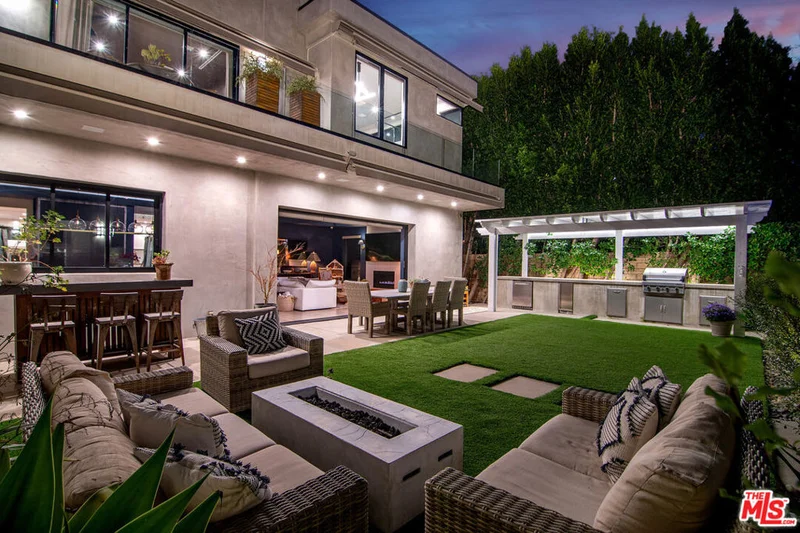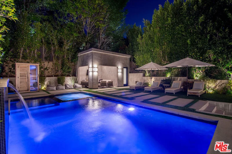 There are homes, and then there are statements. Elevated above the street on a magnificent knoll in the heart of Sherman Oaks, this south-of-the-boulevard modern masterpiece is without question the finest home in the neighborhood and it's not close. From the architecture to the finishes to the upgrades, every detail has been executed at the highest level. This is the one buyers have been waiting for. From the moment you pass through the newly installed secured gated driveway, the experience begins. The property commands attention at every turn, and what awaits inside is nothing short of extraordinary. Step through the front door and the open floor plan takes your breath away soaring ceilings, a formal living room anchored by a floor-to-ceiling marble fireplace, and a striking designer light fixture in the dining area that sets the tone for everything that follows. The staircase alone will stop you in your tracks: all-glass railings with oversized steel rivets form a museum-worthy sculpture that anchors the heart of the home.The chef's kitchen is built for those who love to cook and love to entertain oversized waterfall island, professional-grade stainless appliances, custom cabinetry, and storage that never runs out. A butler's pantry connects the kitchen to the dining room seamlessly, while a full wet bar with flush-mounted wine fridge anchors the opposite side. Sliding Fleetwood glass doors erase the line between indoors and out, opening directly to one of the most impressive backyards in the Valley.Upstairs, four en-suite bedrooms each serve as their own private retreat. The primary suite is in a class of its own a double-sided fireplace warms both the bedroom and the spa-inspired bathroom, creating a true sanctuary at the top of the home.Outside, the resort-style backyard delivers on every level: a zero-edge pool with spa and modern tiled waterfall, a cabana with fireplace and pool-house bathroom, a fully equipped outdoor kitchen, professionally installed turf, lush landscaping, and a plunge sauna. This is not a backyard it's a private retreat you'll never want to leave.Inside, every room has been thoughtfully refined since the original purchase custom wallpaper in the kids' rooms, detailed architectural molding, updated light fixtures and sconces throughout, and rooms repainted in warm greens and blues that give this home a feeling of warmth and livability that newer construction rarely achieves. A brand new AC unit and fully integrated Control 4 smart home system tie it all together.And for those who value privacy and peace of mind, this home delivers at the highest level. Fully gated and secured, it is outfitted with a top-of-the-line, state-of-the-art security system including a front driveway gate, extended side gates with security spikes, 360 hardwired Ring cameras, 8 motion-sensor AJAX cameras covering the full exterior, shatter-proof security film on every downstairs window, and a dedicated safe room. There is simply nothing else on the market that offers this level of protection.This is not the home it was in 2021 it is dramatically better in every way. It shows more beautifully and lives more comfortably. Opportunities like this do not come twice. Don't miss it.