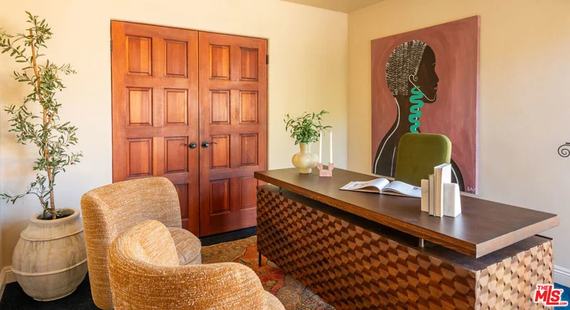 A beautifully preserved vintage Spanish retreat, this sun-filled residence blends classic architectural character with the effortless elegance of mid-century design. Spanning almost 2700 sq ft with four bedrooms and five baths, the home is filled with natural light and thoughtfully designed spaces that feel both refined and inviting. Interiors offer seamless indoor-outdoor flow with versatile living areas ideal for both everyday comfort and entertaining. The chef's kitchen anchors the home and opens to a private backyard oasis designed for relaxed California living. Outdoors, a sparkling solar heated pool is framed by lush landscaping and mature palms, with generous lounging areas, a firepit, and space for sun-soaked afternoons or dining under the stars. The serene primary suite offers a peaceful escape, complete with a spa-like bathroom and steam shower. A rare blend of character, comfort, and resort-style living, the home offers an effortlessly sophisticated lifestyle.