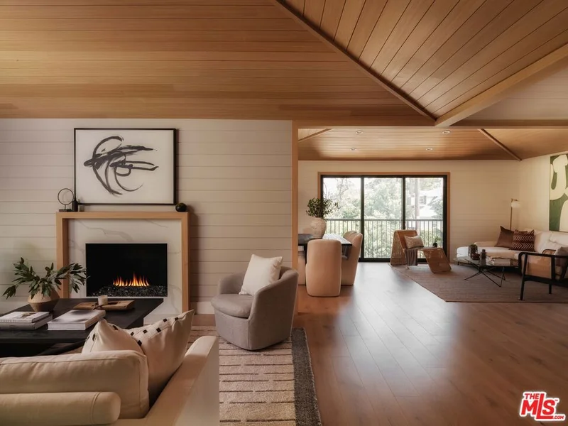 Welcome to this sophisticated transitional home, completely reimagined in 2023 with clean, modern finishes and a layout designed for effortless living. Nestled in one of Sherman Oaks' most desirable south-of-the-boulevard pockets, this home offers a perfect blend of comfort, style, and function, surrounded by lush, mature landscaping that creates a true sense of privacy and tranquility. Inside, you'll find an inviting open floor plan ideal for entertaining. Soaring vaulted wood-clad ceilings, wide-plank flooring, and expansive windows create a light-filled, welcoming atmosphere. The living spaces flow effortlessly from the elegant dining area to the spacious living room with a custom fireplace, and onward to the stunning chef's kitchen featuring custom cabinetry, stone counters, and a large center island with seating for four. Four generously sized bedrooms and beautifully updated bathrooms ensure ample space for family and guests. Just off the garage entry level, a versatile workout studio offers the perfect space for fitness, yoga, or a creative studio. Outdoors, enjoy the lush landscaping that wraps the property in natural beauty, with multiple spots to relax or entertain. The home also offers access to AT&T Fiber Internet for reliable high-speed connectivity, making it as practical as it is comfortable. *** Owner is open to discussing seller financing with qualified buyers ***