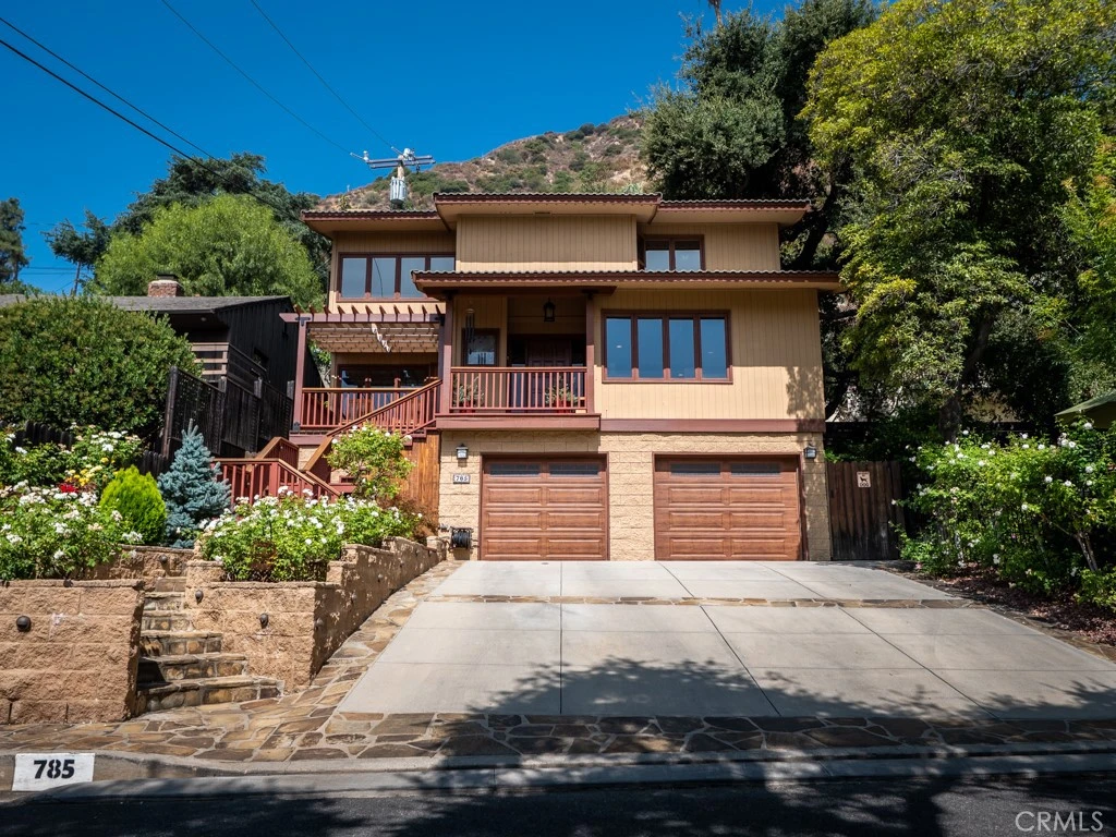 PRICE IMPROVEMENT Nestled in the serene Upper Canyon of Sierra Madre, this stunning home is a haven of natural light and mountain and treetop views. Step inside to find a bright and airy living room, complete with beautiful hardwood floors, a cozy fireplace, and French doors that open to outdoor spaces. The warm, inviting kitchen features a Peninsula Island, luxurious stainless steel appliances, and granite countertops, seamlessly flowing into the dining room bathed in natural light from its casement windows. Step through the French doors to discover a spacious patio/deck, shaded by an avocado tree and a majestic oak—an ideal setting for outdoor cooking, dining, and California-style living. Whether you're hosting a gathering or enjoying a quiet evening, this outdoor space offers peace and privacy. The front deck, with its mountain views, is the perfect spot for morning coffee or unwinding in the evening. Upstairs, you’ll find two primary bedrooms, each with an en-suite bathroom. One even features a cozy fireplace, while both offer treetop and peek-a-boo city views. The home also includes a home office, a two-car garage, and an expansive storage area. The driveway provides ample parking for multiple vehicles—a rare find in this area. This home is truly a special retreat for those seeking a peaceful escape surrounded by nature. Yet, it's conveniently located near hiking trails and Sierra Madres charming downtown area, with its array of restaurants, boutiques, and entertainment options.