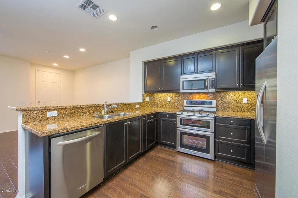Welcome home to this 3 bed, 2.5 bath townhome, located in the Market Place of Simi Valley. This immaculate property still smells new inside and offers a gourmet kitchen featuring maple cabinets in a cocoa finish, stainless appliances including refrigerator, granite countertops w/ breakfast bar, open dining and living rooms, a cozy fireplace, and wood flooring throughout the downstairs. Upstairs you will find spacious master suite with private bathroom and walk-in closet plus 2 additional bedrooms and bathrooms. Features also include a 2 car attached garage with direct access and a community pool/spa with common areas. Front load washer & Dryer are included in the upstairs laundry. Located within walking distance of shopping, dining, and easy access to the train or freeway for commuters