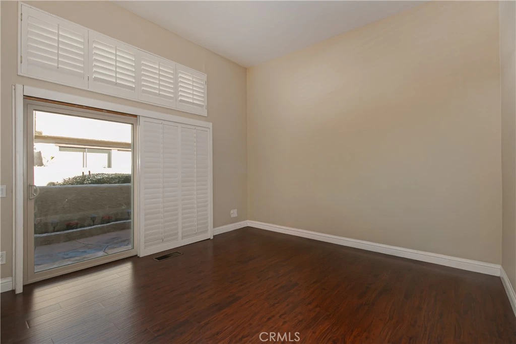 This residence offers a well-appointed living space with several desirable features. It includes two primary suites, both carpeted for comfort. The first primary suite offers a private balcony and an en-suite bathroom featuring dual sinks and a four-bay closet, providing ample storage. The second primary suite is equipped with a two-bay closet and a single sink in its en-suite bathroom. The family room serves as a central gathering area, highlighted by a gas fireplace, a built-in desk, and access to a balcony, offering additional space for relaxation or entertaining. The kitchen is designed with granite countertops, a tile backsplash, a coffered ceiling, and stainless-steel appliances, creating a contemporary and functional culinary environment. The first floor has a ½ bath for convenience and an attached patio extends from the living room, providing an outdoor living area. Throughout the home, plantation shutters are installed, offering both aesthetic appeal and light control. The main living areas feature laminate wood flooring, providing a durable and stylish surface. Practical amenities include a two-car garage with direct access, which also houses a dedicated laundry area and additional storage space.