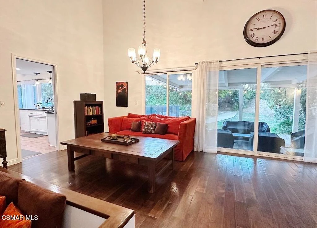 Welcome home to this beautifully updated Simi Valley residence, thoughtfully designed for both comfort and entertaining.Offering five bedrooms and two-and-a-half bathrooms, this home features a desirable downstairs bedroom, ideal for guests, multigenerational living, or a private home office.The interior has been freshly painted throughout and showcases upgraded flooring, newer windows, and recessed lighting in both the living room and kitchen. The newly updated kitchen is the heart of the home, complemented by a built-in bar perfect for gatherings and everyday enjoyment.A standout feature is the double-sided Spanish tile fireplace, creating warmth and ambiance in two separate living spaces and opening to a cozy conversation pit, making this home truly one of a kind.Step outside to a private backyard retreat complete with a gated pool, two attached patio covers, lush grass area, and mature lemon trees, offering both relaxation and functionality for outdoor living.With upgraded bathrooms, timeless character, and thoughtful modern updates throughout, this home is new to the market and ready to impress. Homes like this don't last