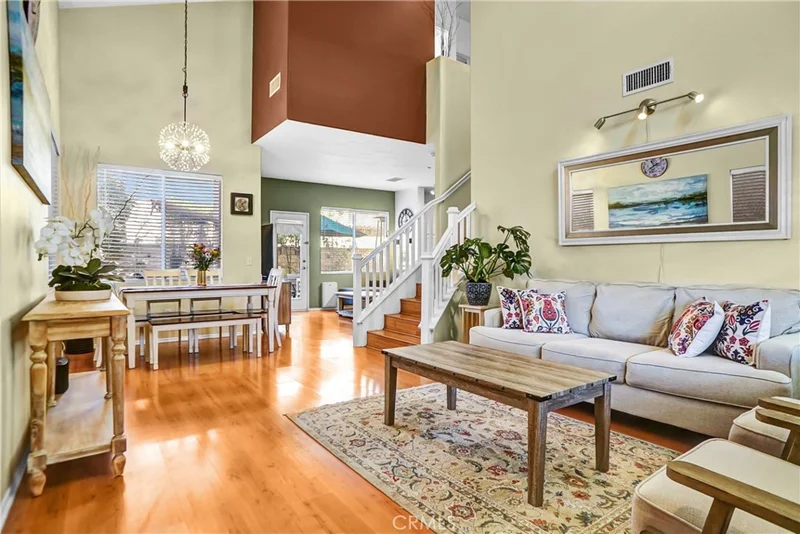 Set within a peaceful, gated neighborhood, this inviting Simi Valley home offers a bright, open layout designed for comfortable everyday living. High ceilings and generous natural light create an airy feel throughout the main level, where the living, dining, and kitchen spaces connect seamlessly for both relaxation and entertaining. The kitchen provides ample counter space and storage, making it easy to cook, gather, and enjoy. Upstairs, the primary suite serves as a private retreat with its own private ensuite bath, dual sinks, and a walk-in closet, while two additional bedrooms offer flexibility for family, guests, or a home office. A low-maintenance backyard extends the living space outdoors and is perfect for unwinding or hosting casual get-togethers. The added putting green is ready for short game practice. An attached two-car garage, in-home laundry, and central HVAC add everyday convenience. Residents of this gated community enjoy access to resort-style amenities, including a large pool and spa, beautifully maintained parks, and basketball courts, creating a vibrant and active environment just steps from home. With close proximity to shopping, schools, and commuter routes, the location blends privacy with practicality—an ideal setting for those seeking comfort, convenience, and community.