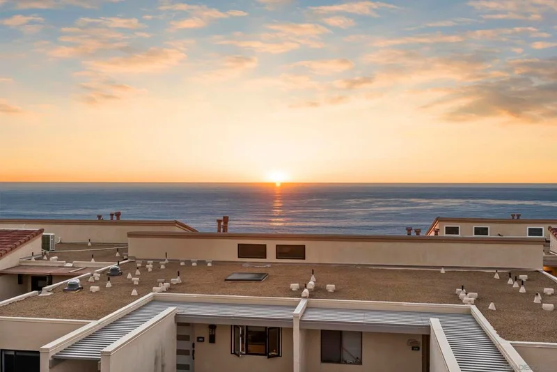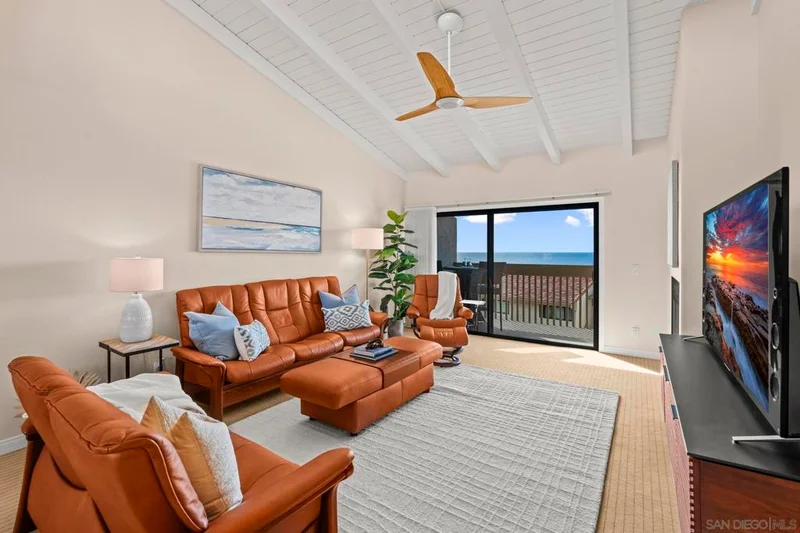 Discover the pinnacle of coastal living in this stunning top-floor, single-story corner retreat with jaw-dropping Pacific Ocean views from every corner. This rare, elegantly remodeled 1,167 sq. ft. corner unit offers 2 spacious bedrooms, 2 bathrooms, and not one, but two balconies designed to showcase the ocean’s beauty. Step inside and be welcomed by soaring vaulted ceilings, skylights in the dining, kitchen, and bathrooms, and a flood of natural light from both east and west exposures. The living areas and bedrooms serve up sweeping ocean panoramas, making every sunset feel like a private show. The kitchen is a chef’s dream, outfitted with premium Liebherr and Bosch appliances, complemented by sleek Giallo Nova quartz polished countertops. Nestled within the exclusive Solana Beach and Tennis Club, this home offers a true resort lifestyle. Located in vibrant Solana Beach, you're just moments from the sand, trendy shops, acclaimed dining, the dog-friendly beach, and the iconic Del Mar Racetrack. With a minimum 7-day lease, this property is not only the perfect seaside escape but also an incredible investment opportunity. Live the dream—where every day feels like a vacation!