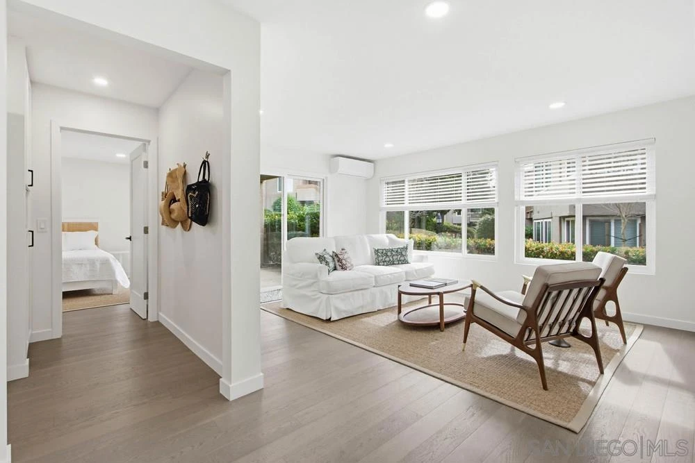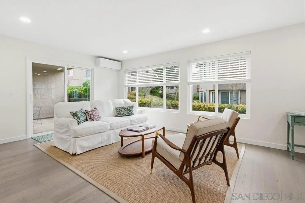 A true "must-see" to fully appreciate! Rarely available 1-bedroom, 1-bath lower-level end-unit condo located in the highly coveted coastal community of Solana Beach. Tucked away in a quiet, private, and serene setting within "The Villas of Lomas Santa Fe", this open and inviting floor plan faces southeast, keeping the home light and bright throughout the day. Thoughtfully remodeled by the previous owner with "top-shelf" finishes and smart-home features designed for the most discerning buyer, this residence seamlessly blends style and functionality. Year-round comfort is ensured with a Bosch multi-zone HVAC system, along with the convenience of in-unit laundry with 220V hookups. The completed renovation included, but not limited to: new windows & glass doors throughout, new flooring, a new water heater, new kitchen cabinets & appliances, new recessed lighting, new washer & dryer, and much more! Residents enjoy beautifully landscaped grounds and resort-style amenities including a clubhouse, heated pool and spa, and racquetball courts. Schedule your private tour today and experience the perfect blend of comfort, quality, and coastal living — just minutes from everything Solana Beach has to offer.