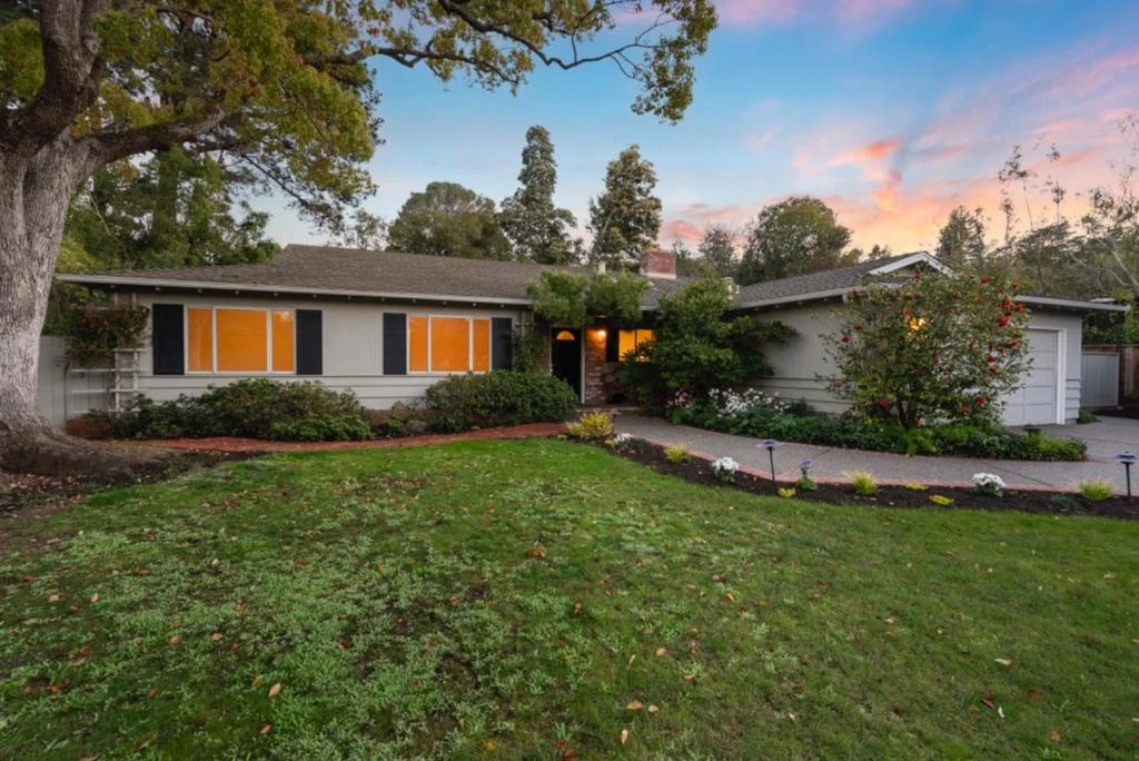 Built in 1958, this mid-century ranch home was the first in the Pine Hill I neighborhood, and offers the best of 1950's California living. Large windows create a seamless connection between indoor and outdoor spaces, while a sparkling pool and vintage touches add to the charm. The galley kitchen flows into a formal dining room with a period indoor barbecue/fireplace. A sliding glass door leads to a potential outdoor kitchen area in the side yard. The expansive living room features a wood burning fireplace and overlooks the pool and private backyard, providing a perfect space for entertaining or relaxing. Three bedrooms, an expanded office/bedroom, and two baths are tucked away on the left side of the house, shielded from the street by a lush green hedge. Whether you are ready to move in or planning to add your personal touch, this classic residence is a perfect starting point. Situated on a quiet street near Mayfield Drive, SCRA, the law school, and Tressider Hall, this home offers a peaceful retreat within walking distance of campus amenities. Please note that this home is only available to eligible Stanford faculty and staff.