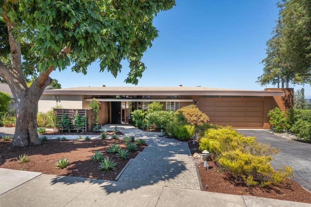 *Available to qualified Stanford faculty and staff only* A moment in time is recaptured in this spectacular 1960s mid-century modern home reminiscent of Frank Lloyd Wright's philosophy of organic architecture--designing in harmony with humanity and the environment. Positioned with marvelous views of the East Bay hills, this dramatic property features clean lines, natural wood framing and masterful angularity. Walls of glass and oversized windows infuse the home with natural light. The impressive living dining great room with its vaulted wood ceiling, corner brick fireplace and surrounding deck is an inviting entertaining space. The retro eat-in kitchen is ideal for traditional family dinners. Arranged on two levels, the unique floor plan offers incredible flexibility. A primary and two additional bedrooms are on the main level while the fourth bedroom, an office plus an expansive family room that opens to the pool area are on the lower level, accessed through an enclosed spiral staircase. Perimeter trees provide a private setting for the home and the polygon shaped pool. Just a few homes away from Lathrop Park and not far from the Stanford Dish, this exceptional property also offers a prestigious campus location with access to excellent public schools.