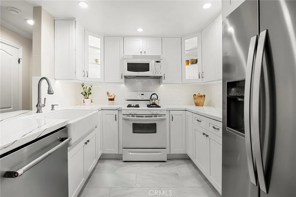 Welcome home to this beautifully upgraded, single-level condominium nestled in the highly desirable Briar Oaks community! From the moment you step inside, you’ll love the light-filled, open-concept layout featuring stylish flooring, spacious dining area open to the family room which seamlessly flows into the updated kitchen, perfect for both everyday living and entertaining. The kitchen shines with quartz countertops, bar seating, and modern finishes, highlighted by custom soft-close drawers and cabinets, a fantastic built-in china hutch complete with lighting, and a classic farmhouse sink, adding both character and functionality. The spacious primary suite offers a stylish private ensuite bathroom with a walk-in shower, creating a true retreat. A well-appointed secondary bedroom and bathroom provide flexibility for guests, a home office, or additional living space. Both bedrooms feature mirrored closet doors and ceiling fans for added comfort. Enjoy the convenience of inside laundry, an attached garage, and thoughtful upgrades throughout. As a resident of Briar Oaks, you’ll also have access to resort-style amenities including a sparkling pool, relaxing spa, lush greenbelts, and the added security of a gated community, plus HOA-covered trash, cable, and internet for added ease. This is a must see!