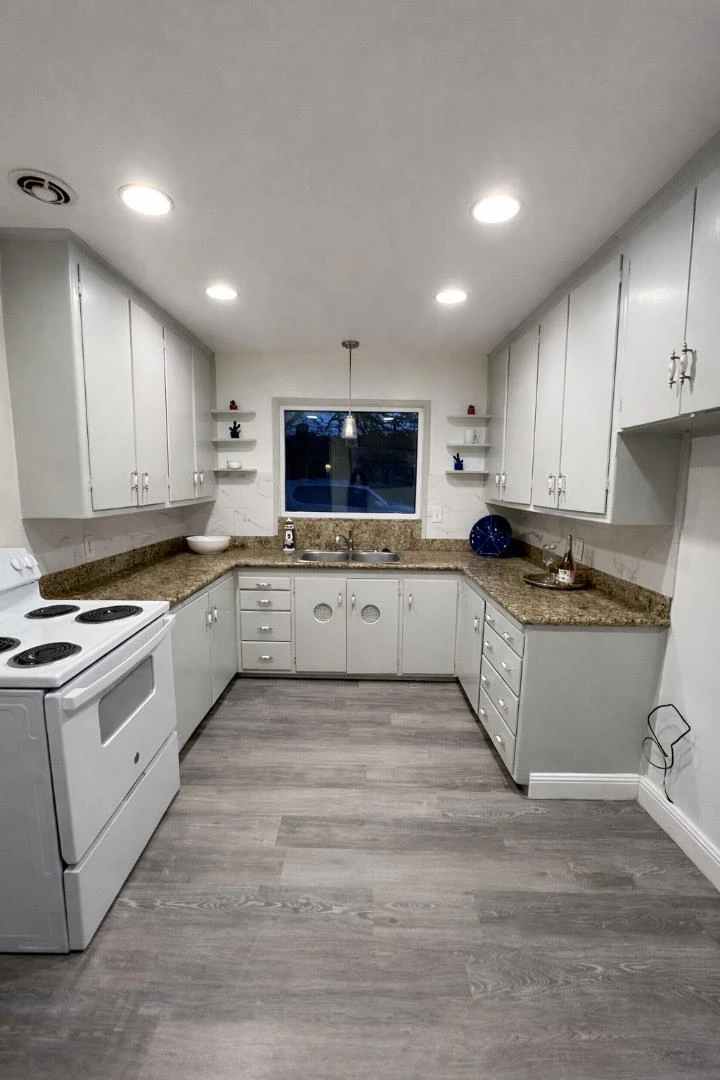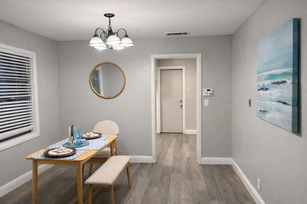 Perfect opportunity for first-time homebuyer, downsizing or investor. This one-story charming home is located in a desirable neighborhood near the Country Club and just minutes from the University of the Pacific. Featuring vinyl flooring throughout, updated baseboards, and dual-pane windows, this home offers comfort and beauty. The kitchen includes granite countertops with a dedicated dining area. Bathrooms feature white vanities and matching vinyl flooring thought this lovely home.Other Features: A/C, Central Heating, Baseboards, and more. Enjoy a huge backyard with plenty of space to entertain, relax, or host summer BBQs. Conveniently located near major freeways, shopping, and schools, this home is an excellent place to start your homeownership journey.