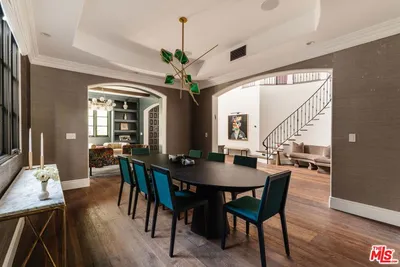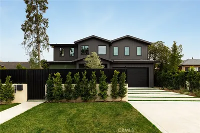 Privately set in the coveted Colfax Meadows neighborhood of Studio City, this Montecito Spanish residence blends timeless architecture with refined modern comforts. Nestled behind lush landscaping, the home offers a serene retreat with an effortless indoor outdoor lifestyle. A dramatic entry welcomes you with soaring vaulted ceilings and a sweeping spiral staircase, setting the tone for the elegant interiors that follow. Just off the foyer, a moody, front facing library features custom built-ins and a striking marble fireplace, creating an ideal space for quiet moments or intimate gatherings. Designed for both formal entertaining and everyday living, the home features a beautiful dining room framed by rounded archways and intricate ceiling detail. The expansive chef's kitchen is thoughtfully appointed with a large center island, butler's pantry, walk-in pantry, and a sunlit breakfast area. It flows seamlessly into the inviting family room, complete with custom built-ins, a fireplace, and sliding doors that open to the backyard. The home offers five bedrooms and six bathrooms, including one bedroom suite on the main level and four upstairs, along with a dedicated office. Each bedroom is ensuite, providing comfort and privacy throughout. The primary suite is a true sanctuary, featuring a private balcony, built-ins with a refrigerator, and a marble fireplace. The oversized primary bathroom is designed for relaxation, complete with a soaking tub, steam shower, dual sinks, a vanity, and an expansive walk-in closet with a center island. Outdoors, the resort style backyard is lush and tranquil, featuring a large saltwater pool with a Baja shelf, spa, fire pit lounge area, and a fully equipped outdoor kitchen with BBQ, perfect for entertaining or unwinding in complete privacy. Just minutes from Tujunga Village, Ventura Place with its renowned Sunday Farmers Market, and the Shops at Sportsmen's Lodge, offering a vibrant mix of dining, shopping, and community. Located within the highly sought after Carpenter Community Charter School district and close to some of the area's most prestigious private schools.