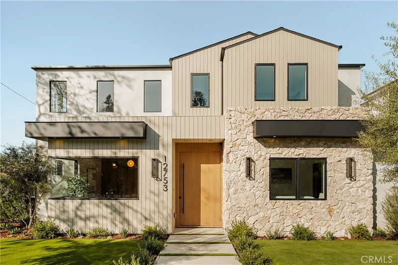 Exceptional new construction in the heart of Studio City, offering approximately 4,800 square feet of refined living space on a prime corner lot. This thoughtfully designed 6-bedroom, 6.5-bath residence delivers the scale, layout, and finishes today’s buyers expect. Clean architectural lines, a striking exterior presence, and curated landscaping set the tone from the moment you arrive. Inside, expansive open-concept living areas are framed by wide-plank flooring, custom millwork, and oversized windows that flood the home with natural light. The chef’s kitchen is built to perform and impress—featuring custom cabinetry, premium appliances, a statement island, and seamless flow into the family room and dining area. Large sliding doors open to a true indoor-outdoor experience, ideal for entertaining at any level. Upstairs, spacious en-suite bedrooms provide privacy and comfort, while the primary suite stands out with generous proportions, a spa-inspired bath, and his and hers walk-in closets designed for real life. The backyard is dialed in for the California lifestyle: a sleek pool with Baja shelf, covered patio lounge, built-in BBQ, and multiple areas for dining and relaxation, all privately hedged and perfectly positioned on this corner lot. Adding long-term flexibility and value, the property includes a fully detached ADU, ideal for guests, extended family or office use. A rare opportunity to own a turnkey, design-forward home in one of Studio City’s most desirable neighborhoods—close to top-rated schools, dining, shopping, and easy Westside access.
