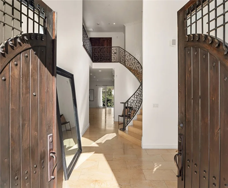 This contemporary Tuscan villa blends timeless elegance with custom craftsmanship, set south of the Boulevard in the heart of Studio City. A grand entry opens to a dramatic living room with soaring 30-foot ceilings, setting the tone for a home designed for both everyday comfort and upscale entertaining. The open layout flows seamlessly into a chef’s kitchen with Viking appliances and a generous center island, connecting effortlessly to the formal dining room. The expansive family room opens to a large balcony with serene mountain views overlooking the resort-style pool and spa, ideal for indoor-outdoor living. A sweeping staircase leads to the luxurious primary suite, featuring a spa-inspired bath with steam shower and soaking tub, along with an impressive walk-in closet. Two additional upstairs bedroom suites each offer their own private bath, providing comfort and privacy. The property also includes separate guest quarters or a private office with its own entrance, complete with a living room, full kitchen, bedroom, bath, laundry room, and patio overlooking the pool. All just moments from the shops and dining along Ventura Boulevard, including Sportsmen's Lodge, this exceptional home delivers luxury, versatility, and a prime Studio City location.