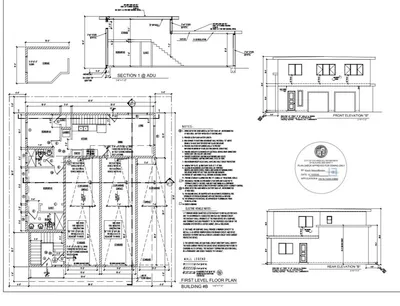 RTI development opportunity in a prime location with approved plans for 4 total units + ADU! Project includes a front duplex (Building A) featuring two spacious 2-story units, each designed with 3 bedrooms and 3 bathrooms, plus a rear 2-story Two unit with attached ADU (Building B), creating excellent flexibility for rental income or multigenerational use. Site plan includes dedicated parking, landscaped open space, and efficient pedestrian access throughout. Modern architectural design with strong unit layout, maximizing both livability and income potential. Ideal for builder, developer, or investor seeking a shovel-ready project in a high-demand rental market.