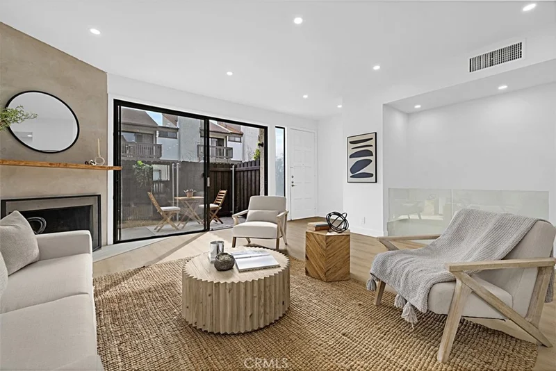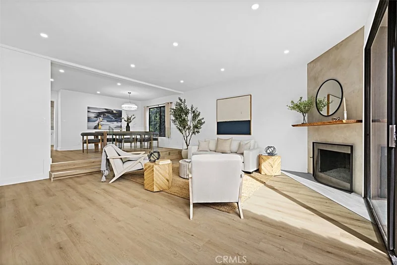 Ideally situated in Colfax Meadows, this beautifully renovated end-unit townhome offers nearly 1,800 sq. ft. of light-filled living just moments from Ventura Blvd, Tujunga Village, Trader Joe’s, and Studio City’s best dining and boutiques. The property has been thoughtfully updated with wide-plank LVP flooring, a stunning smooth-coat stucco fireplace, and a fully remodeled kitchen featuring new cabinetry, quartz countertops, stainless steel appliances, and a stylish backsplash. Upstairs, the spacious primary suite boasts beautiful open-beam ceilings, dual closets, and a private balcony overlooking the courtyard and pool, plus two additional bedrooms and additional full bath. The direct-access two-car garage connects to a versatile bonus space—ideal for a home office, gym, or studio. Turnkey, quiet end unit in one of Studio City’s most sought-after neighborhoods. Welcome home.