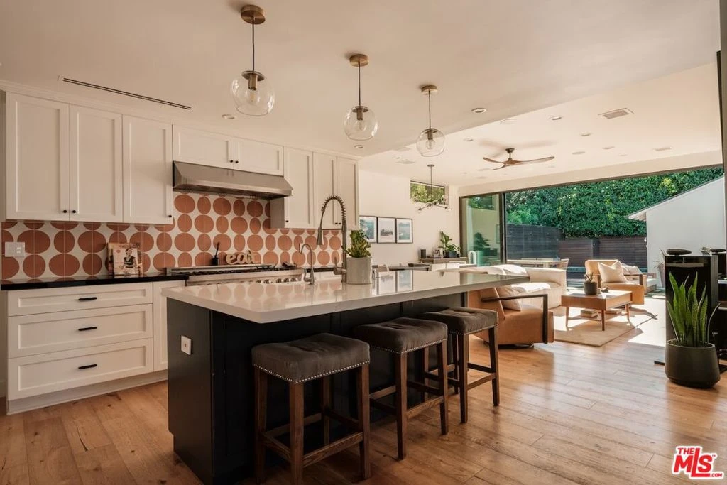 Tucked behind mature, manicured hedging and set back from the street, 4257 Shadyglade Avenue offers a rare sense of privacy and calm in the heart of Studio City. Situated on a corner lot within the sought-after Footbridge Square neighborhood, this recently remodeled three-bedroom home blends thoughtful design with a warm, livable aesthetic, creating a tranquil retreat just moments from the area's most desirable amenities. Upon entry, light-filled living spaces unfold with a seamless flow, enhanced by clean lines, curated finishes, and a strong indoor-outdoor connection. Expansive floor-to-ceiling sliding doors open effortlessly to the backyard, inviting natural light in and extending the living areas outward for effortless everyday living and entertaining. The rear grounds are anchored by a pool, set within a private and serene setting framed by lush greenery, ideal for both quiet relaxation and hosting. A grassy front yard adds to the home's charm and usability, while enclosed hedging ensures a sense of privacy from the street, and the corner lot orientation enhances the feeling of openness and space. Ideally located in one of Studio City's most sought-after pockets, just moments from Ventura Boulevard's shops, restaurants, and cafes, 4257 Shadyglade Avenue presents a rare opportunity to experience a more private and composed way of living.