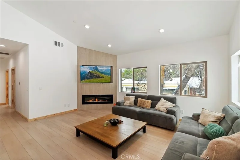 LOW MAINTENANCE MOUNTAIN LIVING! Nearly new. Single Level. Effortless Living. Built just 2 1/2 years ago, this modern mountain home offers the rare combination of single-level design; Energy-efficient systems; Turn-key condition; Minimal exterior upkeep. Perfect for buyers who want to enjoy Big Bear -- not maintain it. Thoughtfully designed floor plan that maximizes every square foot. No wasted space. No stairs. No projects. Open concept layout with vaulted ceilings, high quality finishes. Kitchen has soft close cabinetry and a hidden walk-in pantry. Both bathrooms offer a spa-like feel with light up mirrors and Bluetooth fans. Brass fixtures throughout. Attached garage for added convenience. Ideal as a weekend retreat or low-maintenance full-time residence. Compact outdoor space means less maintenance and lower snow removal costs. Why buy a remodel when you can buy nearly new?