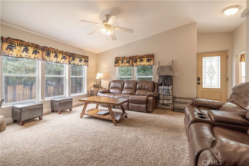 Your perfect slice of Big Bear living awaits! Step into this charming log-style cabin and feel the weight of the world melt away. The warm and inviting living room features a beautiful rock fireplace and soaring vaulted ceilings—ideal for snuggling up on crisp mountain evenings. Sunlight pours in through the many windows, filling the space with natural light. The kitchen is just the right size, complete with an adorable dining nook that adds to the home’s cozy appeal. The spacious primary suite includes a large bathroom and wide hallways that add to the open feel of the home. Start your mornings on the front deck, sipping coffee as you listen to the forest come alive, and spend your afternoons entertaining on the generous side deck. This is more than just a cabin—it’s where lifelong memories are made. Don’t let this mountain gem slip away! Used as a short term rental currently