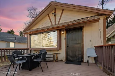 Escape to this cozy mountain cabin offering the perfect blend of charm, comfort, and convenience. Featuring 2 bedrooms and 1 full bathroom, this inviting home is ideal as a weekend getaway, full-time residence, or income-producing retreat. Inside, you’ll find an open-concept kitchen and dining area designed for easy living and entertaining. The kitchen charms with butcher block countertops, adding warmth and character, while vinyl flooring runs throughout the main living areas for durability and style. A stackable washer and dryer are conveniently located in the hallway. The living room is the heart of the home, highlighted by a classic rock fireplace with a raised hearth—perfect for cozy evenings after a day outdoors. Go outside to the front deck, an ideal space for BBQs, relaxing, and enjoying the fresh mountain air. A level concrete parking pad provides easy access and convenience. Located near the San Bernardino National Forest, this home offers quick access to hiking trails and outdoor adventure, while being just a short 10–15 minute drive to local slopes, shopping, and dining. With its prime location and inviting features, this property also presents a fantastic opportunity for short-term rental income.