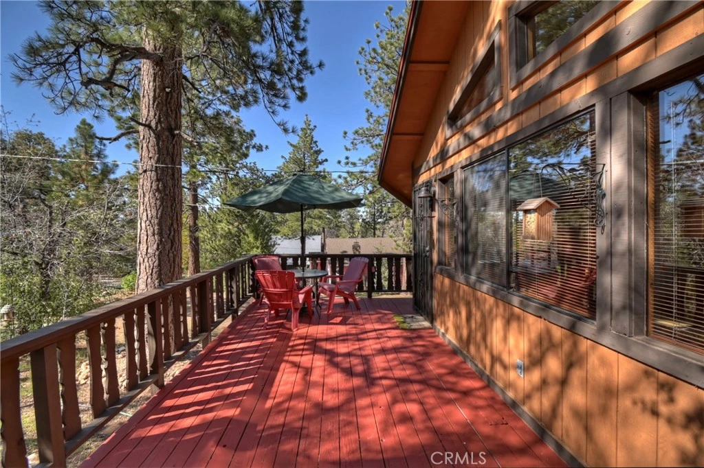 Tucked into a peaceful pocket of Sugarloaf just a few homes from the National Forest, this captivating chalet-style retreat delivers the mountain lifestyle buyers are searching for ~ Set on an expansive 6,250 sq ft lot, the property offers space, privacy, and that coveted “away from it all” feeling, yet you’re only 10 minutes from all the dining, shopping, slopes, and lake activities Big Bear is known for ~ Step inside to an inviting open-concept layout designed for connection and comfort. Soaring tongue-and-groove ceilings bring warmth and architectural charm, while natural light fills the space, creating an airy, welcoming ambiance perfect for relaxing after a day outdoors or entertaining friends and family ~ Anchoring the living room, a charming wood burning fireplace serves as the focal point, creating the perfect cozy mountain ambiance for crisp evenings and unforgettable gatherings ~ The home features two generously sized bedrooms, offering plenty of room to unwind and recharge ~ A laundry area with washer and dryer adds everyday convenience, making this property as functional as it is charming ~ Outside, the oversized lot provides endless potential, whether you envision outdoor entertaining, additional parking, or simply room to breathe under the pines ~ A detached 12X12 storage shed is ready to house all your mountain toys, kayaks, bikes, skis, and more so you can fully embrace the Big Bear lifestyle ~ Whether you’re looking for a full-time residence, weekend escape, or investment opportunity, this property checks all the boxes with location, character, and usability ~ Don’t miss your chance to own a slice of mountain magic.