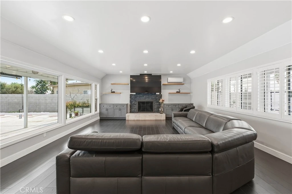 This beautiful property features a spacious main house offering 3 bedrooms and 3 bathrooms, along with both a family room and a living room in an open floor plan layout. The home showcases large updated windows that bring in abundant natural light, a newer roof, fresh interior and exterior paint, and an updated kitchen. A private laundry room adds convenience, and the walk-in attic space provides plenty of storage. In addition, the attic has been finished and can be used as a guest room, home office, or private space for an older child seeking independence. The property also includes a rear guest unit featuring 2 bedrooms and 1 bathroom . A long driveway leads to a massive lot of over 16,500 square feet of usable space. Enjoy outdoor living with a wrap-around patio in the backyard, beautifully set with brick pavers — ideal for entertaining or relaxing. This property offers space, versatility, and incredible potential.
