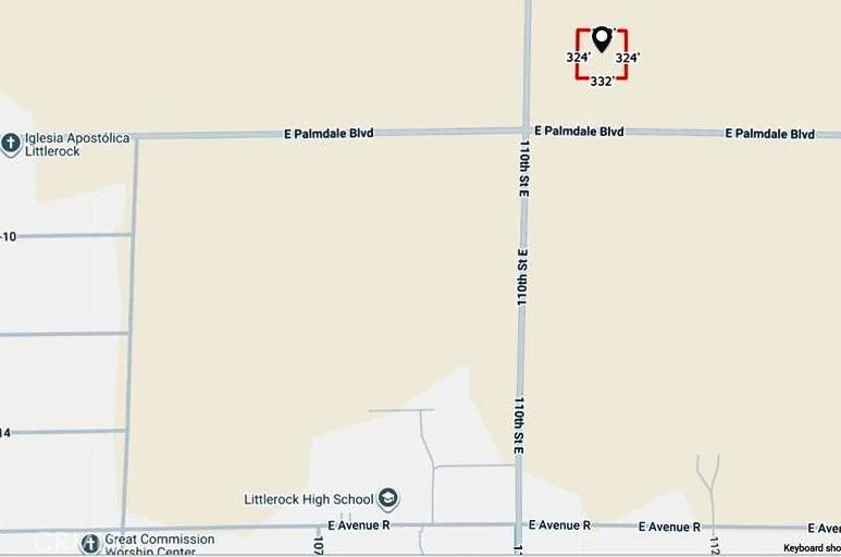 Near beautiful Sun Village (Littlerock area). Endless possibilities. This lot's location is exceptional: just north of Palmdale Rd, and just east of 110th St; walking distance to Little Rock High School. Fantastic spot for spacious family home or for those looking to develop residential properties. This area is uses propane for gas, and septic tanks. Electricity is runs along Palmdale and 110th St. You may need a well for water. Build now, or hold for future development. Buy in the path of future development.