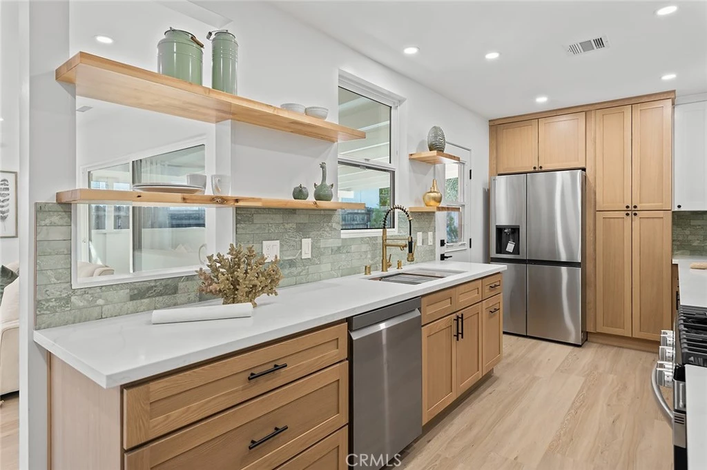 Experience modern living and classic convenience at 8048 Wentworth St, a meticulously reimagined 3-bedroom, 2-bathroom single-level residence that has been fully renovated from top to bottom. The heart of the home is a stunning designer kitchen featuring on-trend two-tone cabinetry, elegant quartz countertops, and a custom designer tile backsplash that perfectly complements the open-concept layout. Both bathrooms have been exquisitely remodeled with high-end fixtures and contemporary finishes, offering a zen-like retreat for residents. Beyond the aesthetics, this home provides ultimate peace of mind with all-new major systems, including the roof, electrical, plumbing, energy-efficient dual pane windows sleek sliding doors. The living space extends seamlessly outdoors to a massive covered patio with premium Trex decking, overlooking professionally designed drought-resistant landscaping that ensures effortless curb appeal. From the designer-curated interior to the brand-new infrastructure, every detail of this Sunland gem has been executed with uncompromising quality and style.