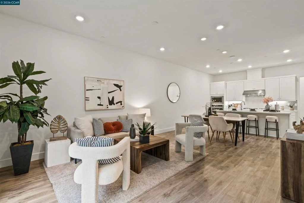Connect with what matters most at Terraces at The Station, a new townhome community in Sunnyvale, the heart of Silicon Valley. A truly accessible home with a room on every level. Craftsman style stairs flow up to the bright living level on the second floor, revealing the spacious great room, covered balcony, and casual dining area. The designed kitchen is highlighted by a large center island with breakfast bar, Energy Star KitcheAid stainless steel appliances, modern cabinets, quartz countertops with designer tile backsplash. The third floor, the gracious primary bedroom suite is enhanced by an ample walk-in closet and a gorgeous primary bath with a dual-sink vanity, a large luxe shower with seat enhanced by clear-glass enclosure. Thoughtfully designed interiors with 8-foot doors, 5-1/2" baseboards, and modern energy-saving LED integrated recess lights throughout. Finished 2-car garage includes pre-wired plug with 50 amps for electric car charging. Enjoy the community clubhouse, indoor/outdoor lounge area, fireplace, bocce ball court, dog park, walking paths and expansive lawns. Terrace at the Station is located near Santana Row, Valley Fair Mall, Shopping Centers. Close to VTA Light Rail, Lawrence Caltrain and Bart. (photos not of actual home, for marketing only)