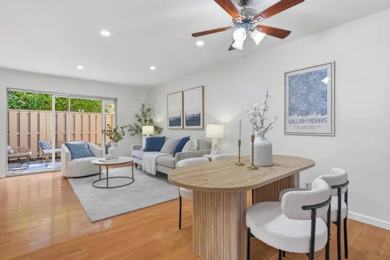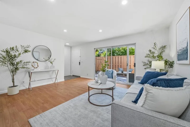 Welcome to this rare single-level townhome with 2 bedrooms and 1 bathroom in sought-after Sunnyvale. The home features a large fenced front yard offering very good privacy. Upon entry is an inviting living room filled with ample natural light. A sliding door opens to the front yard, creating great indoor-outdoor living. The connected dining area includes a ceiling fan/light and flows into the kitchen. The gourmet kitchen offers granite countertops, stainless steel appliances, and ample white cabinetry. Nearby is a laundry area with washer and dryer for added convenience. Along the hallway are two bedrooms with large windows and a hallway bathroom with a shower over tub. Enjoy the community pool and clubhouse. Conveniently located near parks including Serra Park and Ortega Park. Just 8 minutes to Apple Park, with easy access to Highways 85 and 280 and a short commute to major tech companies. Great schools. Do not miss this great opportunity!