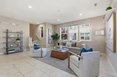 Welcome to this stunning former model home with quality construction and designer upgrades across the home. Unlike traditional narrow townhomes, this 3 bed, 3.5 bath residence features a corner unit with a wide-profile square footprint, allowing natural light to flood deep into the heart of the home. The open-concept features custom tile floors with a designer kitchen equipped with granite countertops, custom cabinets, modern stainless steel appliances, light fixtures and upgraded window treatments. The luxurious primary suite offers a walk-in closet and a spa-inspired bathroom with double sinks and a spacious shower. Designed for flexibility and comfort, the home features a ground-floor bedroom suite with attached bathroom for guests, parents or rental income. Additional highlights include central air conditioning, forced air heating, and an attached 2-car garage for secure parking and extra storage. Nestled within a vibrant community, residents enjoy private access to a dedicated children's play area, a spacious dog park and a large community hall perfectly catering to every member of the family. Ideally located within the heart of Silicon Valley and close to major tech campuses. Big-tech commuter bus stop is right in front of the community.