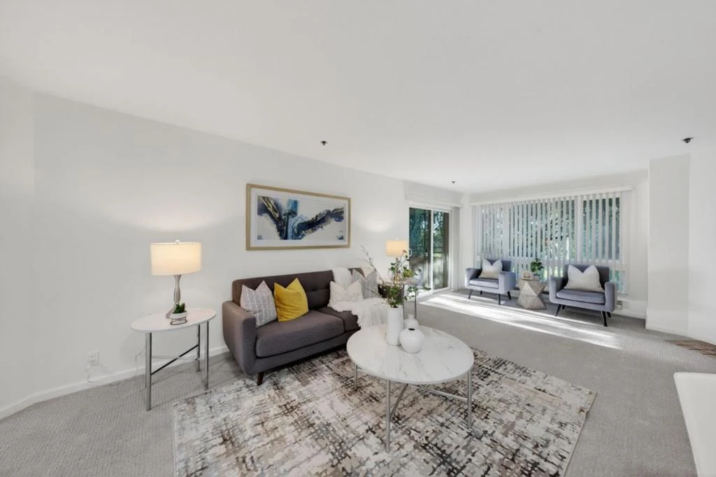 Situated in the desirable Sunnyvale Fairways community overlooking the Sunken Gardens Golf Course, this move-in ready, condo presents a fantastic starter opportunity. The open-concept floor plan seamlessly connects the kitchen, dining, and living areas, creating an ideal space for both everyday living and entertaining. The spacious bedroom features a large walk-in closet and en-suite bathroom, while multiple sliding glass doors from both the living area and bedroom lead to a private patio, perfect for enjoying warm summer evenings. Recent upgrades include fresh interior paint, updated light fixtures, new carpet, and a newer thermostat. Additional conveniences include an in-unit washer and dryer, one dedicated underground parking space, and ample guest parking. Community amenities include a pool, spa, clubhouse, and playground, with HOA dues covering water and garbage. Ideally located just minutes from Apple Park and major Silicon Valley tech campuses, with easy access to commute routes, shopping, and dining. Do not miss the opportunity to live in the highly sought-after Sunnyvale Fairways community.