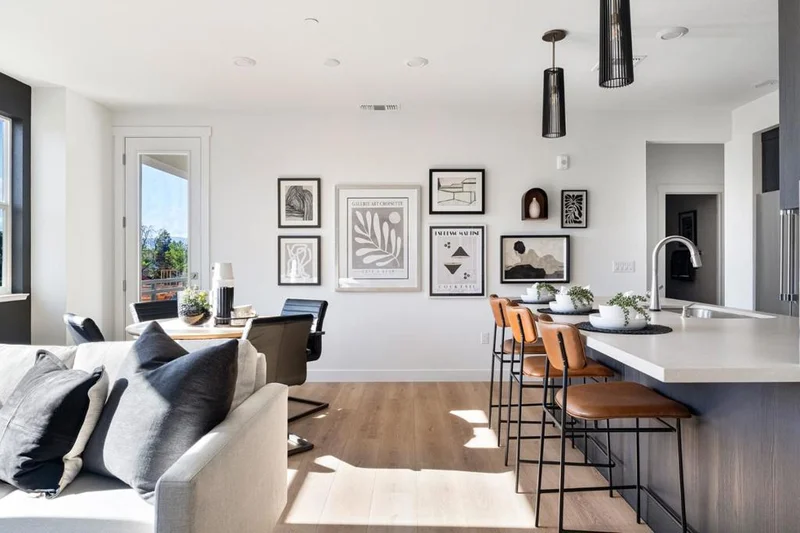 Brand new construction! Lot 39, Plan 5 is a 3-bedroom, 3 bathroom boasting 1,618 square feet of living space designed for modern living. Spread across two floors, the home offers views and abundant natural light. The heart of the home is the open floor plan on the third floor, seamlessly integrating the kitchen, living room, bedroom, full bathroom, and deck, all with plenty of room for entertaining. The kitchen features a Bosch appliance package and gorgeous quartz countertops, while the island provides a convenient spot for food preparation or casual dining. Two additional bedrooms are located on the fourth floor, ensuring privacy and tranquility. Both bedrooms boast views, making them the perfect retreats after a long day. Vida is a new collection of 50 two- and four-bedroom energy-efficient townhomes. Open floor plan designs range from approximately 1,378 to 2,037 square feet. Vida's central location is within walking distance of shopping and dining, as well as Fremont High School and the Sunnyvale Community Center Park. Please note that the images are artist renderings and do not reflect the actual home for sale.