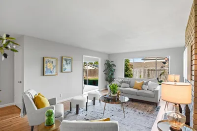 Light-filled home with modern updates & fantastic location just 0.4 miles to Apple Spaceship Campus! Cook up scrumptious meals in the kitchen with new quartz countertops with full backsplash & fresh white cabinet accented by stylish hardware. A peninsula with seating is perfect for more casual meals, while the adjacent dining room has a sliding door that lets natural light stream in. Wide windows & tasteful accent walls add warmth & character while sparkling hardwood floors extend through the living room, hallway, & bedrooms. Plus, a skylight in the hall bathroom fills both the bathroom & hallway with natural light, enhancing the home's bright, airy feel. Outside, delight in a paved seating area & spacious yard ideal for relaxing or entertaining. Two stunning bougainvillea & other mature plants add bursts of color when in bloom. Enjoy a prime Silicon Valley location in this quiet neighborhood close to major tech employers, convenient thoroughfares for commuters, scenic parks, delicious restaurants, & high-end amenities. Plus, students have access to excellent schools in Laurelwood Elementary, Peterson Middle, & Wilcox High (buyer to verify)!