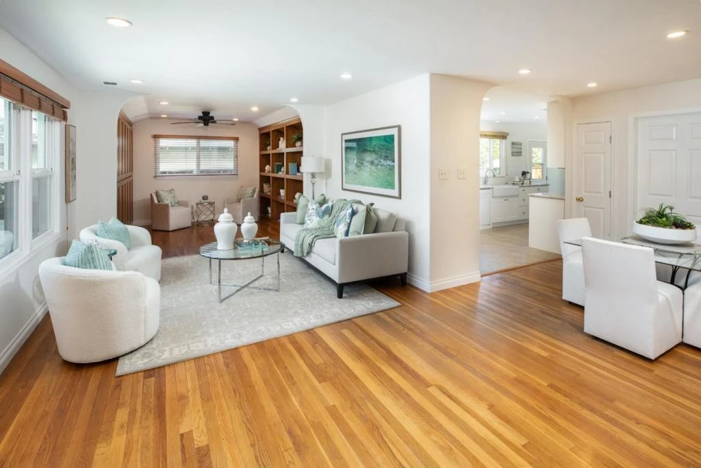 Nestled in a peaceful neighborhood less than a mile from downtown Sunnyvale, this home exudes charm the minute you drive up! Remodeled kitchen boast Quartz counters & tile backsplash, soft closing drawers, gas stove, microwave, refrigerator, tile floors, an eat-in nook and ample storage. Other features include: Remodeled bath with tile floors, and tile surround over the tub, built-in bookcases in sitting area, hardwood floors, dual pane windows, new interior paint, recessed lighting in living, dining and kitchen, 200 amp service, EV hookup for RV (120 V) and for car (240 V). Low maintenance landscape with drip system, Numerous fruit trees -apricot, dwarf grapefruit, dwarf tangerine, dwarf blood orange and avocado. Petanque court, and storage shed. Great location with easy access to shops, freeways, schools & top Silicon Valley tech campuses.