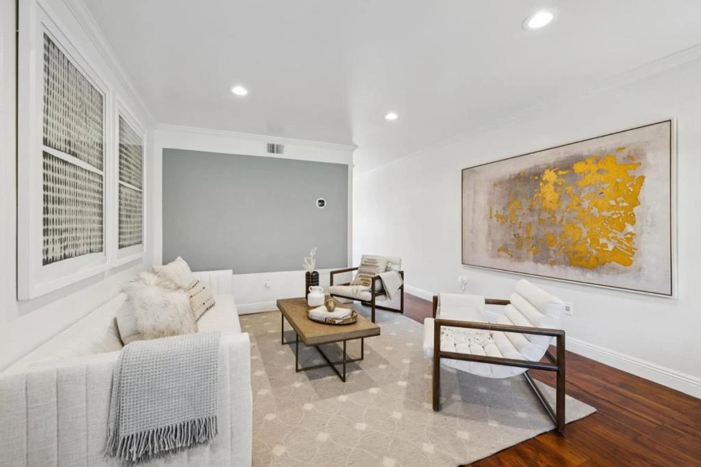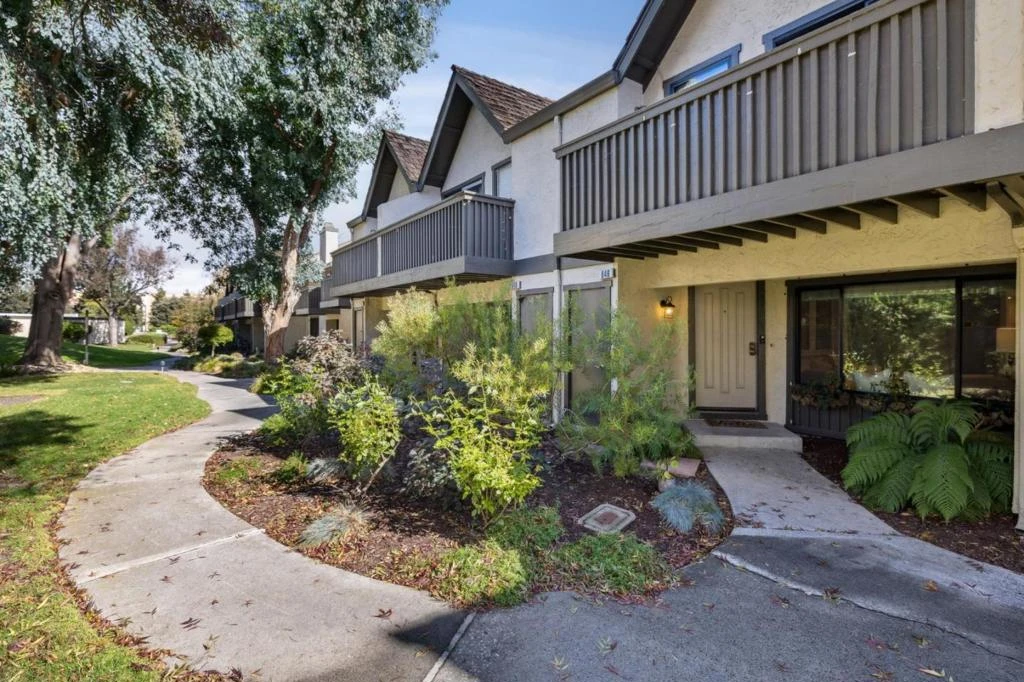 Beautifully maintained light-filled 2-story townhome centrally located for an easy commute! This spacious townhome is designed for easy living! Renovated in 2018 & 2025 & continually refreshed, the stunning great room with gleaming wood floors and a picture window overlooks a serene front garden. Modern eat-in chef's kitchen with quartz counters, custom cabinets, stainless steel appliances, and custom designer tile backsplash. Sliding doors extend the kitchen into a private backyard patio, ideal for year-round indoor/outdoor California living. Light-filled primary bedroom with private balcony and a stunning ensuite bath, including an oversized granite vanity with a designer glass tile surround and a shower. Second bedroom features ample light & storage, plus a beautiful ensuite bath with granite counters, designer glass tile accents, and a shower/tub combo. Additional features include a stackable washer/dryer, a smart thermostat, a Navien tankless hot water heater, central A/C, and a detached two-car garage with storage. Located in the desirable San Miguel neighborhood, walkable to shopping and dining. Near high-tech campuses, shuttle routes, 101. Note: The Home Has Been Previously Staged. Minimum 720 FICO and 2.5x rent as income to qualify.