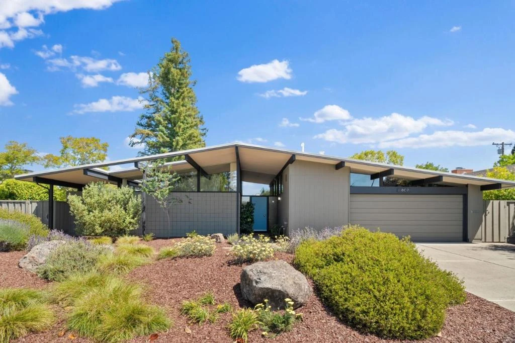 Built in 1968, this home is one of Joseph Eichlers later creations, and one of the more unique floor plans youll find. The primary bedroom is located at the front of the home with high ceilings, clerestory windows, ensuite bath, and slider to a private outdoor patio. The spacious living room faces an entire wall of glass with a corner brick fireplace. There is a formal dining room, plus an informal eating area in the kitchen. The open kitchen features Corian countertop, Oak cabinets and built-in workspace. Three bedrooms surround a central family room, with a slider to the backyard. Two of those bedrooms share an adjoining bath and the fourth has its own private bath. Many iconic features throughout exposed post & beam construction, floor to ceiling glass, globe lighting. Radiant heated floors plus AC mini split systems. Updated double pane windows and sliders. Large utility room with laundry and built in cabinetry. Attached two car garage. Beautifully maintained wrap-around yards with native plants, patio and gazebo. Located in Sunnyvales Primewood tract, composed of only 35 Eichler homes. Within a 10 min bike ride to schools West Valley Elem, Cupertino Middle, Homestead High. Walk to Serra Park. 3mi to Apple Campus. Minutes to Googleplex, Whole Foods, downtown Sunnyvale.