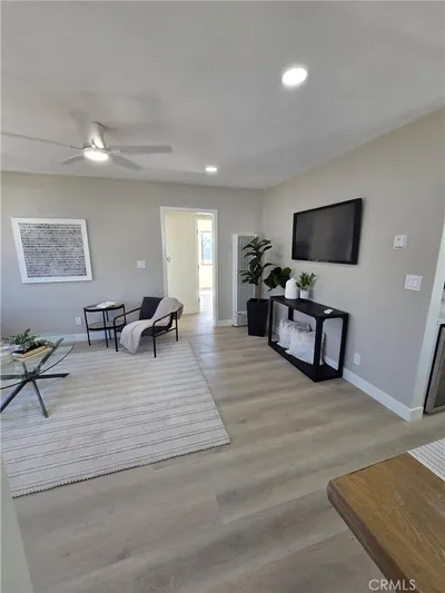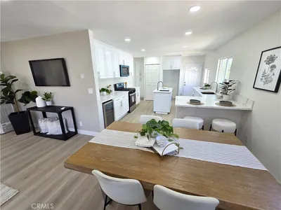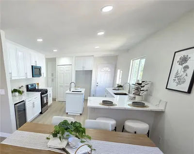 REMODELED with style, this 3-BED, 2-BATH home offers incredible value. Kitchen is massive with quartz countertops, new stainless steel sinks(2), stove, microwave, new pull-out spice cabinet, pantry, mini-fridge, new digital-temp faucet, built-in mini-fridge, built-in cutting board/drying rack, utility sink in island; come and see it all! Newly-textured walls, newly-painted throughout, recessed LED lighting, dimmers, ceiling fans w/remotes, new doors, casings, baseboards, new blinds, premium vinyl laminate, gorgeous Master Bath & walk-in closet, three (3) entry gates, motorized access for garage, new plumbing for bathrooms and laundry, 200-amp Panel, 24-SEER Mini-Split cooling, 30-yr Cool Roof, block-wall perimeter w/ironworks, fruit trees, cemented back yard for hosting, oversized garage area for ADU future (separate access set-up is perfect)...all in a wonderful neighborhood with lovely mountain views. IT'S BEAUTIFUL; COME SEE IT FOR YOURSELF!