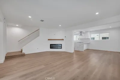 Welcome to the highly desirable Suntree community in Tarzana. This beautifully remodeled 3-bedroom, 2.5-bath corner townhome offers exceptional privacy, abundant natural light, and a thoughtfully designed layout. Situated on the top level, this bright and airy residence features Pergo waterproof flooring throughout, new windows, recessed lighting, and a modern neutral color scheme that creates a warm, inviting feel. The updated kitchen showcases white cabinetry, quartz countertops, and stainless steel appliances blending style and functionality seamlessly. The inviting step-down living room is highlighted by a decorative fireplace and private balcony, while the separate step-down dining area provides the perfect setting for entertaining. A convenient powder room completes the main level. Upstairs, you'll find two spacious guest bedrooms, a tastefully remodeled full bath with a double-sink vanity, and full-size side-by-side washer and dryer hook-ups for added convenience. The primary suite offers a walk-in closet and a large bath, finished with porcelain walls and Marble counters. Additional features include a detached two-car garage located just across the pathway. The Suntree complex is beautifully maintained and centrally located, offering comfort, privacy, and convenience in one of Tarzana's most sought-after communities.