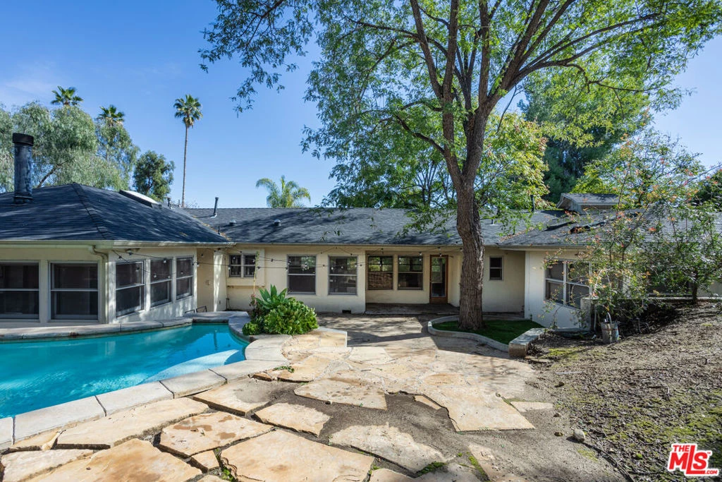 Prime Melody Acres location! Experience the peace and quiet of the countryside in a prime Valley location in this charming Traditional Ranch estate, perfectly situated on an expansive half-acre lot in the highly sought-after Melody Acres neighborhood of Tarzana. This private retreat offers the perfect blend of mid-century character and modern potential. The main residence features 4 bedrooms and 4 bathrooms spread over a bright, open floor plan that flows effortlessly to a massive backyard oasis. Step outside to find a sparkling pool and integrated spa, surrounded by lush greenery and sprawling grounds ideal for grand-scale entertaining or peaceful seclusion. A standout feature of this property is the detached bonus 400 sq ft structure, perfect for a professional home office, creative studio, or potential ADU. With nearly 21,000 square feet of land, the possibilities are endless. Located within the sought-after Taft Charter High School boundaries and just minutes from the shopping and dining of Ventura Blvd, this is a rare chance to own your very own private oasis.