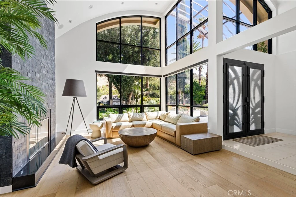 Tucked away in the hills of Tarzana on a sprawling 18,000+ sq. ft. gated lot, this custom-built estate showcases striking architectural details and is strategically set back from the street to create a private retreat. Enter through bespoke double doors into a grand foyer that flows seamlessly into the spacious formal living and dining room. Lofty 20 ft ceilings and expansive walls of glass that stretch from floor to ceiling flood the space with warm natural light, making the space feel bright and airy. Through the butler’s pantry lies a gourmet chef’s kitchen, outfitted with commercial-grade Viking appliances, a walk-in pantry and center island with an integrated dining table. A sliding glass door in the family room leads out to the secluded backyard sanctuary, which is surrounded by mature landscaping and boasts a heated pool and spa. There are four generously sized ensuite bedrooms spread throughout the home, each with a walk-in closet. The expansive primary suite features a versatile bonus space, private balcony, custom walk-in closet and sumptuous bathroom, complete with a soaking tub, steam shower, double vanity and separate makeup vanity. Additional highlights include a dedicated laundry room, security system, countless upgrades (newer roof, wide plank oak floors, dual pane windows, built-in speakers and so much more), a two-car garage with an EV charger and gated driveway with ample space to park multiple vehicles. Located south of the Boulevard in a top-rated school district, this property is just moments away from everything the Valley has to offer.
