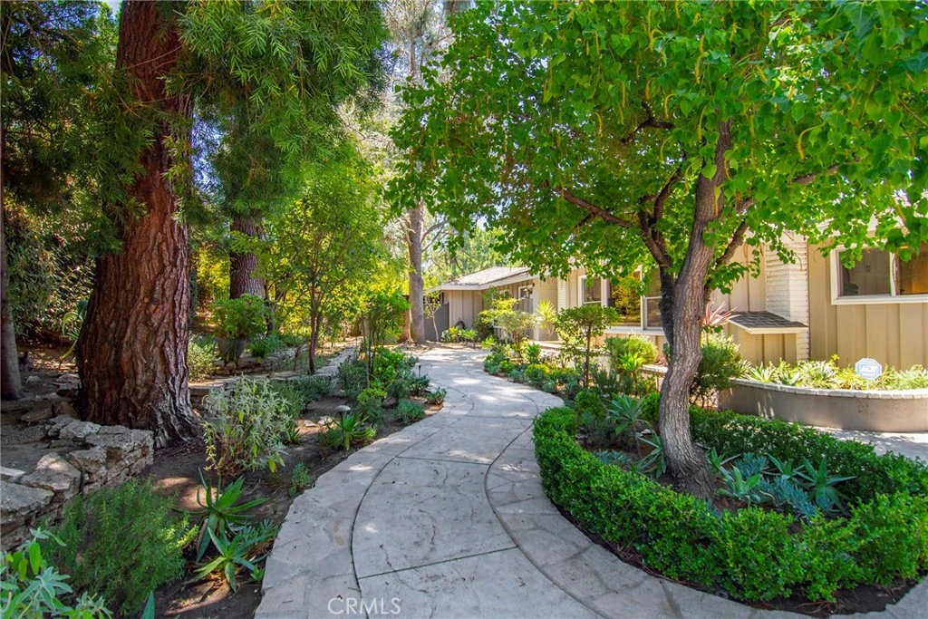With this one, be prepared to take the leap, as this may very well be your treasured home for a lifetime. Extraordinary beyond words & once experienced, you’ll never want to let go. Situated on a sprawling nearly 1/2 acre magical lot at the end of a tranquil cul-de-sac where a gated entrance welcomes you with open arms. Exquisite professional landscaping, lush foliage & majestic trees create this mesmerizing woodsy environment. Inside, all the warmth & charm within this light & bright single-level ranch is truly captivating. Gorgeous hardwood flooring & A-framed wood beamed ceilings make a lasting first impression. Living rm enjoys a cozy fireplace, custom built-in & large windows to devour the tranquil backdrop. A distinct brick fireplace defines the family rm/dining area & the open kitchen, which oversees all, affords beautiful cabinetry, quartz counters, six-burner wolf range, & an ideal breakfast nook. The huge primary suite is a private haven within. Soaring A-framed ceilings, sitting/office area, his/her walk-in closets, 2 glass doors to access the rear & large skylights. An escape within the escape is this ultra-luxurious primary bath enhanced by unique architectural ceiling accents, a sizable rain-head shower, striking custom tile work & a cherished soaking tub masterfully positioned beneath a large bay window to harness the serenity the exterior natural splendor inspires. 2 of the 3 additional bedrooms are ensuites with beautifully upgraded baths & the front bedroom adjoins a stunning hall bath. Outside, the love brewing from what you’ve already witnessed will now be become so deep, it just may haunt you forever should you let it slip away. This spectacular private rear yard goes well beyond anything you’ve been yearning for. Enjoy covered dining/entertaining with an outdoor fireplace. An incredible side section offers a story-book tree house where a collection of childhood memories await creation. A massive newly plastered pool/spa features a large baja step. Stunning wood deck, fireside conversation arena, outdoor shower & yet another incredible section at the western edge completes these sacred grounds. Within the garage, a room with heat/air & adjoining bath can be utilized as an office, studio, gym or more. Why travel to a distant forest to renew and reconnect with nature when you can reside within your very own each & every day. Truly an incredible house on an incredible street with sought-after schools too. Miss this & you’ll be so sorry!