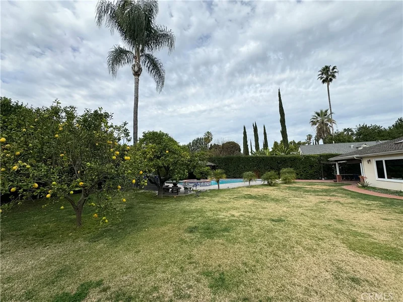 Rare opportunity for developers- double legal lots, approx. 9,000 sqft each, south of Ventura Blvd. Currently a spacious 5 BR - 3.5 BA one-story home in approx. 3,500 sqft on an almost 18,000s qft gated lot. Updated over the years, home features a grand room with high, pitched ceiling, family room and dining spaces, and a wood burning fireplace. Gourmet kitchen features custom cabinetry stainless-steel appliances, and granite countertops. Large primary suite features high, pitched ceilings, walk-in closet, office, and spacious primary bath. Expansive backyard features large grassy area, mature landscaping/citrus trees, covered patio, and pool/spa.