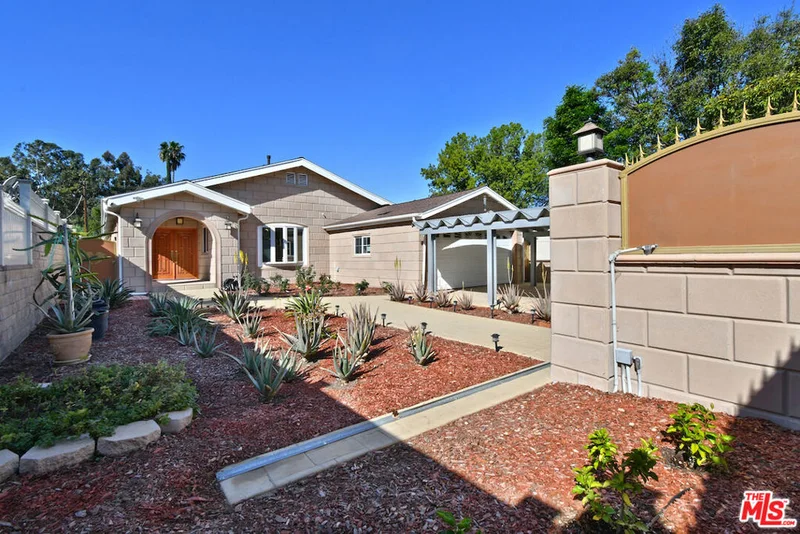 This spectacular, privately gated single-story estate sits on an expansive, flat lot in prime Tarzana. Offering four bedrooms and three baths, the residence showcases exceptional comfort and refined elegance, highlighted by the finest finishes and thoughtfully curated design details throughout. The home was thoughtfully enlarged in 2005, with the kitchen and bathrooms beautifully remodeled in 2018, blending timeless design with modern functionality. The chef's kitchen is a true showpiece, featuring gleaming quartz countertops, designer tile backsplash, stainless steel appliances, and a charming eat-in breakfast area that flows seamlessly into the perfectly positioned dining room. The grand family room impresses with soaring cathedral ceilings, a stunning fireplace, and a picturesque bow window that fills the space with natural light, ideal for today's modern lifestyle and effortless entertaining. The luxurious primary retreat features French doors, a spacious walk-in closet, and a beautifully reimagined Four Seasons inspired bath complete with dual vanities and a sleek glass-enclosed shower. Three additional bedrooms are generous in size and scale. Modern convenience meets high-end living with Smart Home amenities including a 10-camera security system, Cat 8 wiring, automatic backup generator, tankless water heater, automated metal shutters, water filtration system, and intercom entry. The resort-style backyard is an entertainer's dream, boasting lush landscaping with multiple fruit trees, a sparkling saltwater pool and spa, and a covered patio equipped with fans, lighting, outdoor speakers, and sun shades perfect for year-round California living. This is Tarzana living at its finest.