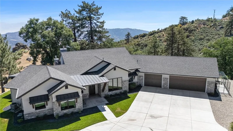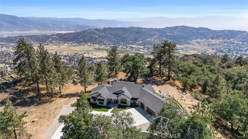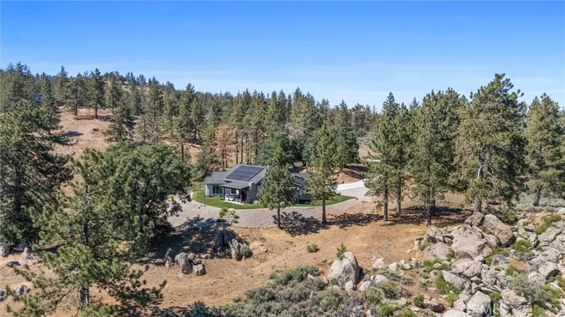 Constructed in 2022, this unique custom-built single-story home features heated hydronic tile floors throughout, antique hand-hewn oak ceiling beams in the den, 2 EV charging outlets, two Tesla batteries with 21 solar panels providing virtually no electric bill each month and eliminating the inconvenience of power outages, fiber internet, exquisite interior and exterior stonework and a chef’s kitchen with built-in Thermador appliances. The property provides stunning views across the valley from The Grapevine in the southwest to the windmills in the southeast. Sunsets are breathtaking above the mountains in the distance. Step through the ten-foot-tall front door into the wide-open floor plan, enhanced by a 13-foot-high vaulted ceiling and large Anderson window views of the mountains and valleys below. The living area is highlighted by a modern linear stone fireplace situated beneath an 85-inch television. The adjacent chef’s kitchen offers ample area for family cooking and socializing. The kitchen is equipped with a top-of-the-line large Thermador built-in refrigerator and matching freezer, a 6-burner range, and 2 microwaves. Adjacent to the kitchen and walk-in pantry is a spacious formal dining room. The primary bedroom boasts an ensuite bath, extra-large shower, walk-in closet, and private terrace where one can snuggle up with a good book and a cup of coffee or watch the endless activity of nature’s creations. On the same wing of the house is a guest bedroom and full bath. An opposite wing offers an additional bedroom with ensuite bath and adjacent den. The private rustic den has its own stone fireplace and television. The laundry room is equipped with a washer and dryer, wall and base cabinets and granite counter with room to hang clothes above a utility sink. Other interior features include wide interior doorways, an expansive 3-car garage with tankless water heater, whole-house water filtration and softener system, generator transfer switch, garage refrigerator, and workbench. There is even a dog-collar-activated door leading to an attractive outside dog pen. Outside provides acute attention to landscaping, a fenced and terraced garden area, LeafFilter gutters, and 3 patios: one with stone fireplace, tv and bar. Two adjacent lots are also available, both with picturesque rock outcroppings and level building sites.