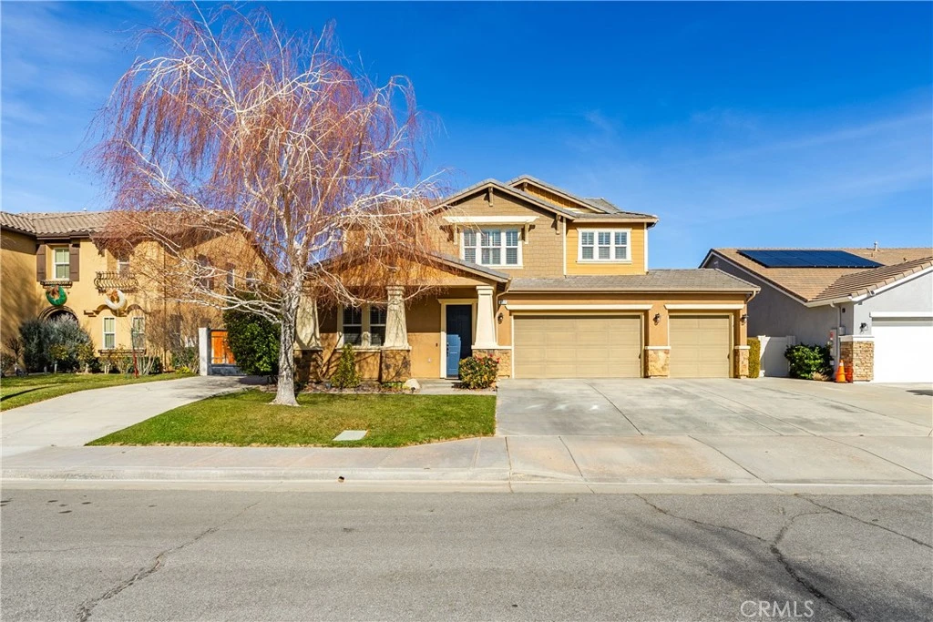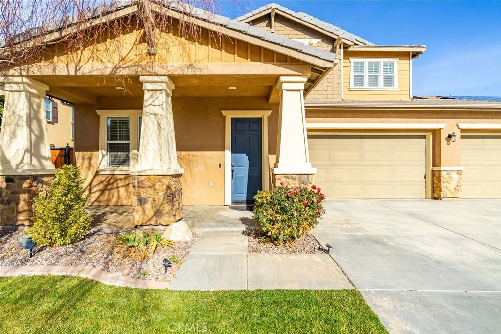 Sought-after Orchard Glen community! This beautifully upgraded 4-bedroom, 3-bathroom home is ideally situated on a quiet cul-de-sac and showcases pride of ownership inside and out. A covered front porch welcomes you into an expansive formal living and dining room with soaring 10-foot ceilings, creating an impressive first impression. The thoughtfully designed kitchen features upgraded cabinetry, granite countertops with matching granite backsplash, double ovens, and a large center island with breakfast bar—perfectly positioned to overlook the warm and inviting family room. The family room offers a cozy stone fireplace and classic wood window shutters, ideal for everyday living and entertaining. One full bedroom and bathroom are conveniently located downstairs. Upstairs you are immediately greeted by an open loft, with stunning views of the mountains and windmills, that is ideal flex space for office/teen retreat/gaming area. The generously sized primary suite is a true retreat with mnore stunning views and made complete with an updated spa-inspired bathroom featuring dual sinks, a vanity area, granite counters, an oversized walk-in shower, separate soaking tub with custom tile work, and a large walk-in closet. Secondary bedrooms are all spacious and well-appointed. Even the staircase has been upgraded with solid-surface risers, adding a high-end touch. The backyard is an entertainer's delight, boasting a custom stamped concrete patio, built-in gas fire pit, custom landscape curbing, spa pad, and lush lawn—perfect for gatherings or relaxing evenings. Additional highlights include paved RV access and close proximity to shopping, dining, and other local amenities.